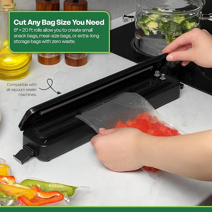 Keep your food fresh with Comfort Ope 3-pack 8” x 20’ vacuum sealer rolls. Made from durable, BPA-free material. Ideal for home or commercial food storage. Compatible with FoodSaver and other vacuum sealing machines.